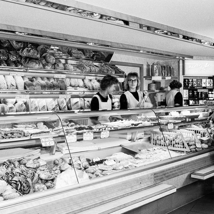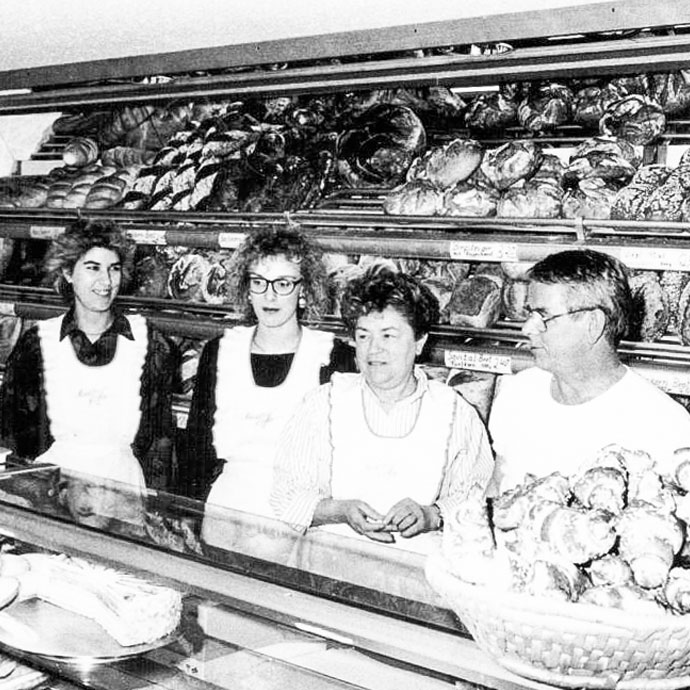 Der erste Geselle und Lehrling wird eingestellt. Außerdem wird in eine neue Verkaufstheke und einen neuen Ofen investiert. Neben einfachen Weckle und ein paar Sorten Brot findet das erste Vollkornbrot seinen Weg in die Bäckerei.