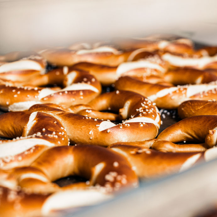 Es ist ein offenes Geheimnis, dass sich unser Handwerk auch aus der Nähe betrachtet kein bisschen verstecken muss: In meiner offenen Backstube darf jeder Mensch hautnah miterleben, wie seine Weckle live und lecker geknetet, geformt und knackfrisch gebacken werden. Und dabei bleibt es.